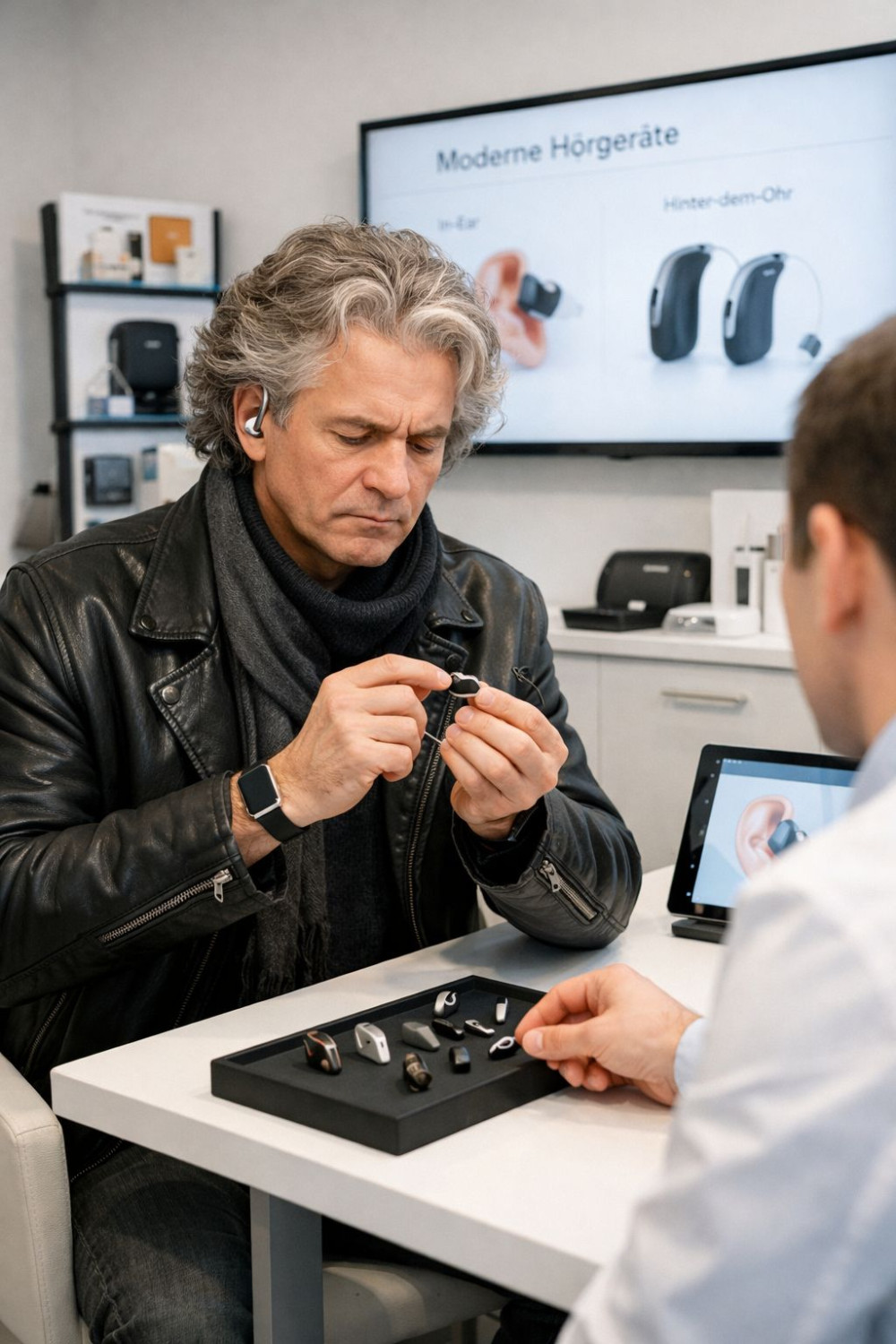 Die Beratung war von einer Intensität, die mich physisch erschöpft hat. Als ich ihm das moderne Hochleistungs-Hörgerät zeigte, reagierte er mit blankem Hohn und fast körperlicher Abscheu.