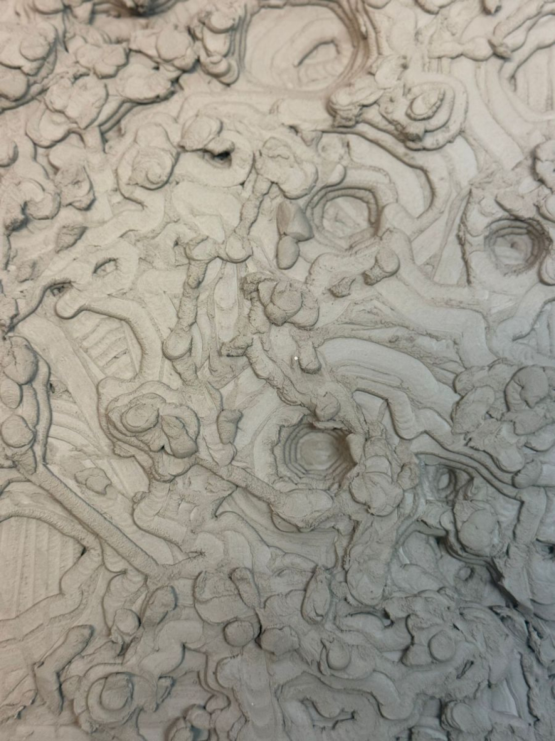 Gestern und heute vibrierten die Smartphones unaufhörlich durch Nachrichten in einer WhatsApp-Gruppe, und aus Regensburg sendet Marion Abate ihre tiefen Reflexionen: „Wie die Orion-Kapsel den Mond umkreist, entstehen gerade im keramischen 3D-Druck Formen in Schichten – Bahn für Bahn, Linie für Linie. Die Rückseite bleibt zunächst verborgen, zeigt sich erst im Prozess und trägt Spuren von Material, Zeit und Bewegung in sich – ein stiller Dialog zwischen Kontrolle und Unvorhersehbarkeit.“