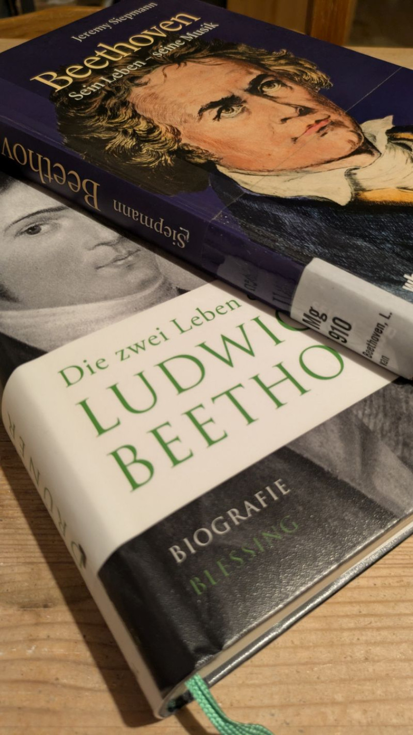 Doch meine Gedanken waren alles andere als still. Ich stand vor dem Regal mit der Signatur für Biografien und Musikgeschichte. Unzählige Buchrücken starrten mich an, alle mit demselben Namen bedruckt: Ludwig van Beethoven.