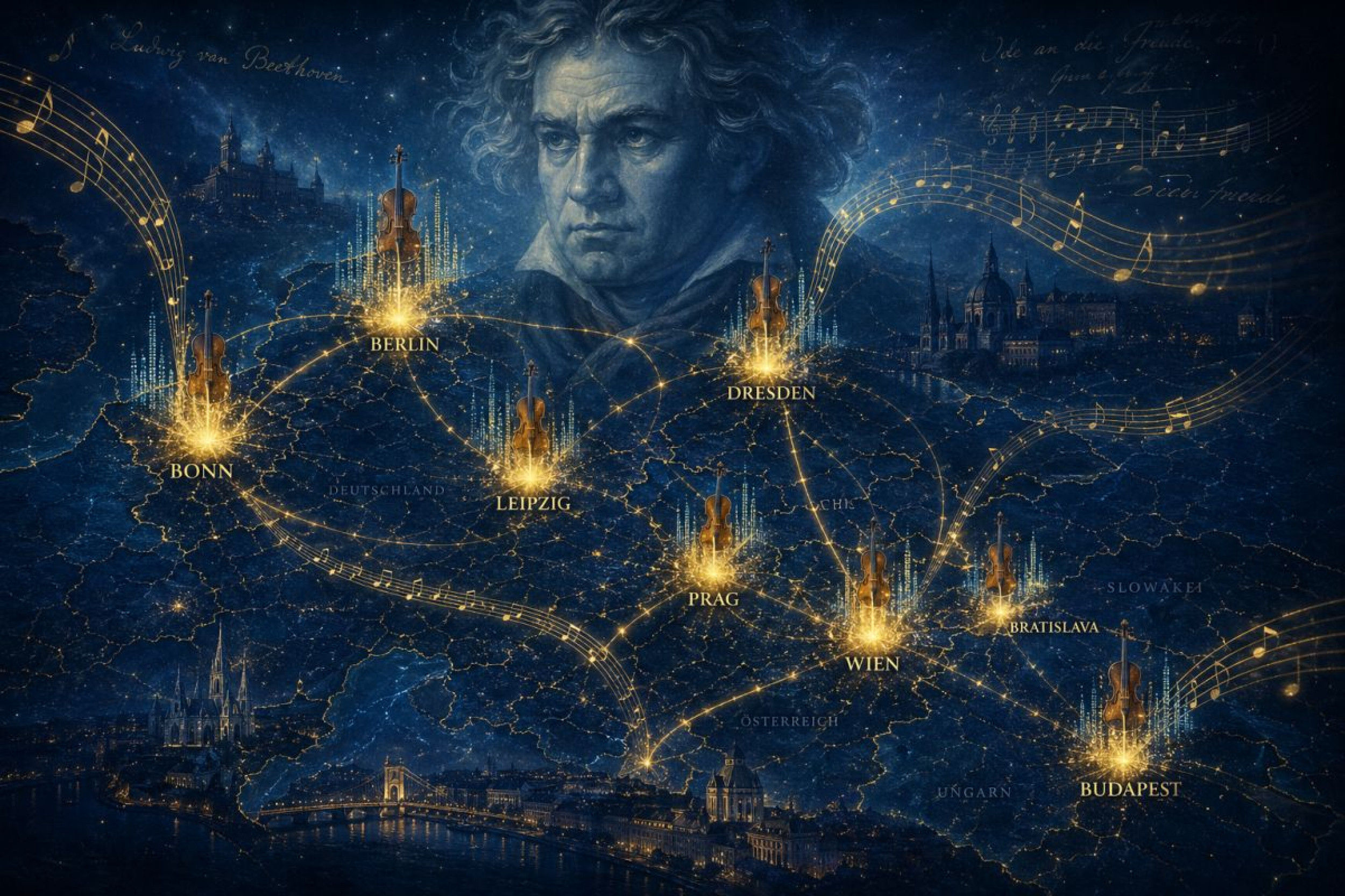 In the run-up to the 200th anniversary of Ludwig van Beethoven's death in 2027, an impressive dynamic is emerging in schools and educational institutions throughout Central Europe in 2026. The following compilation illustrates that Beethoven is not only included in the curriculum as a historical figure but is also actively reinterpreted by thousands of young people. These projects demonstrate the enormous reach of the thematic complex: the competition 'Encounter with Eastern Europe' alone annually mobilizes around 20,000 young people, while specialized music high schoolsin cities like Bonn and Berlin reach directly over 2,500 actively involved students and their families in the districts with their concerts. The historical authenticity is deeply rooted – from the successor school of Beethoven's own educational institution in Bonn to the music schools in Vienna, Prague, and Budapest, which teach directly at his former places of activity.